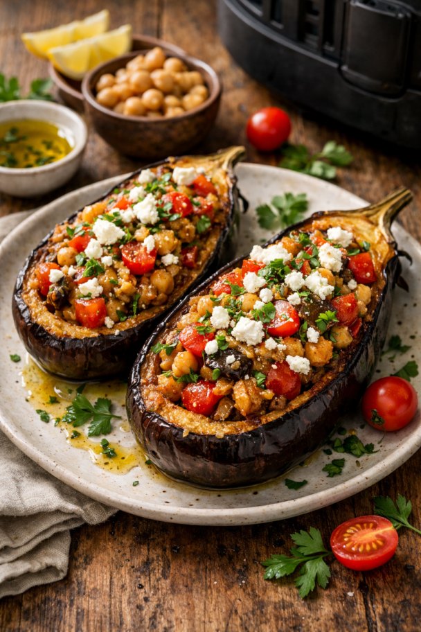 Air Fryer Mediterranean stuffed eggplant