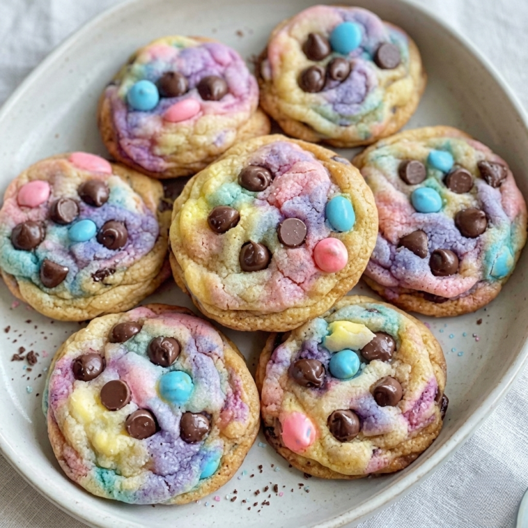 Pastel Tie-Dye Easter Chocolate Chip Cookies are soft, thick, and beautifully swirled with pastel colors that make them perfect for spring celebrations.